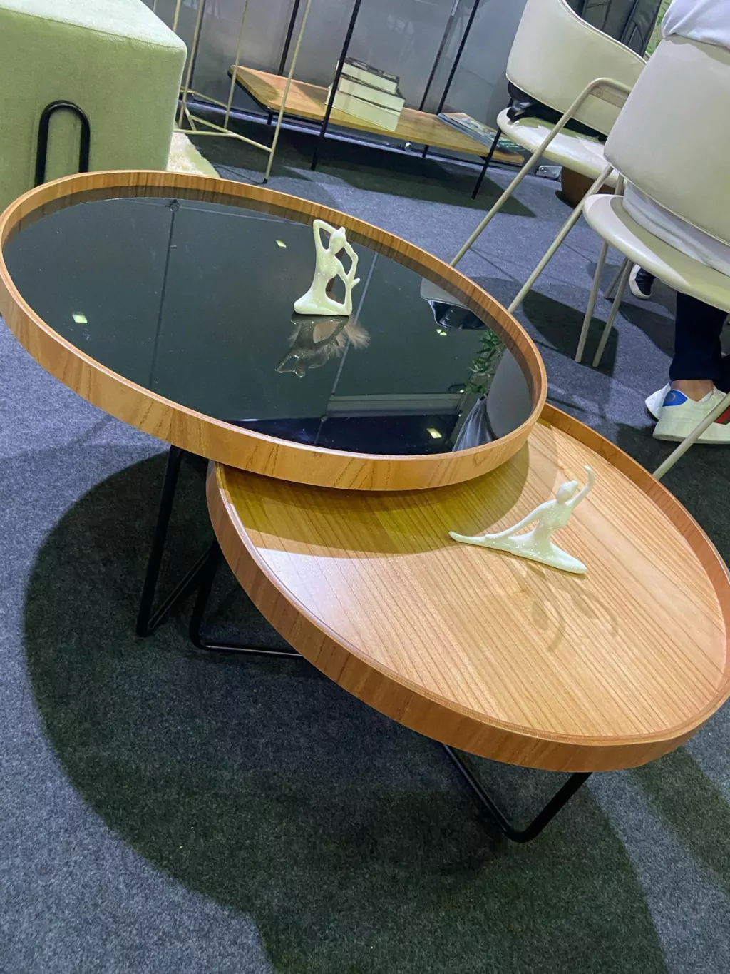 Apresentamos o extraordinário conjunto de duas mesas de centro redondas, uma fusão perfeita entre a beleza natural da madeira e a elegância atemporal do vidro. Cada mesa é uma obra-prima de sofisticação e modernidade, projetada para elevar o estilo de qualquer sala de estar.