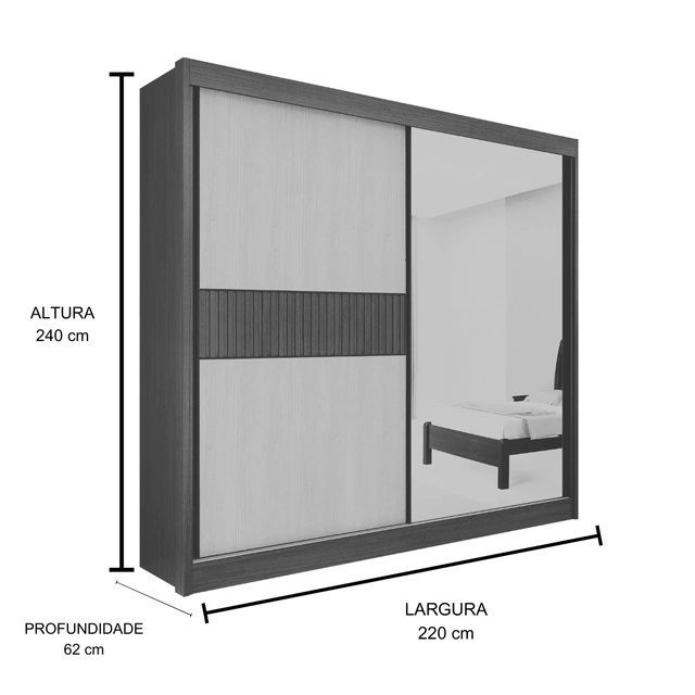 O amplo espaço interno garante organização eficiente, com divisórias bem distribuídas para roupas, calçados e acessórios. Ideal para quartos que exigem praticidade sem abrir mão do estilo.